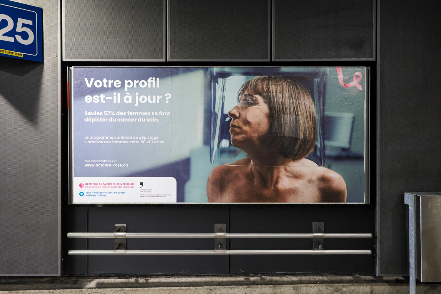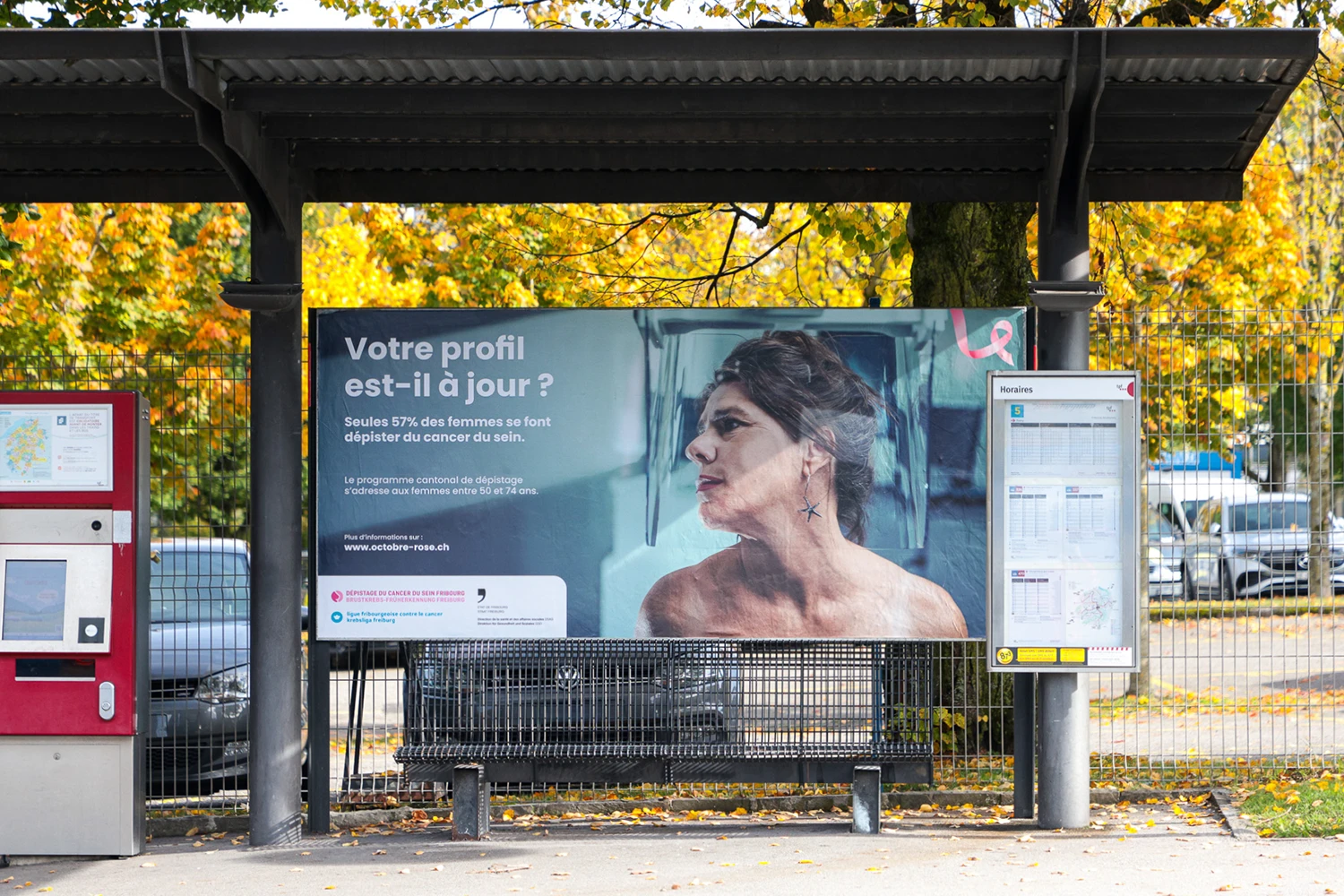 Dans le cadre d'Octobre Rose, nous avons eu pour mission de créer une campagne multisupport, visant à sensibiliser les femmes du canton de Fribourg sur l'importance de cet examen.